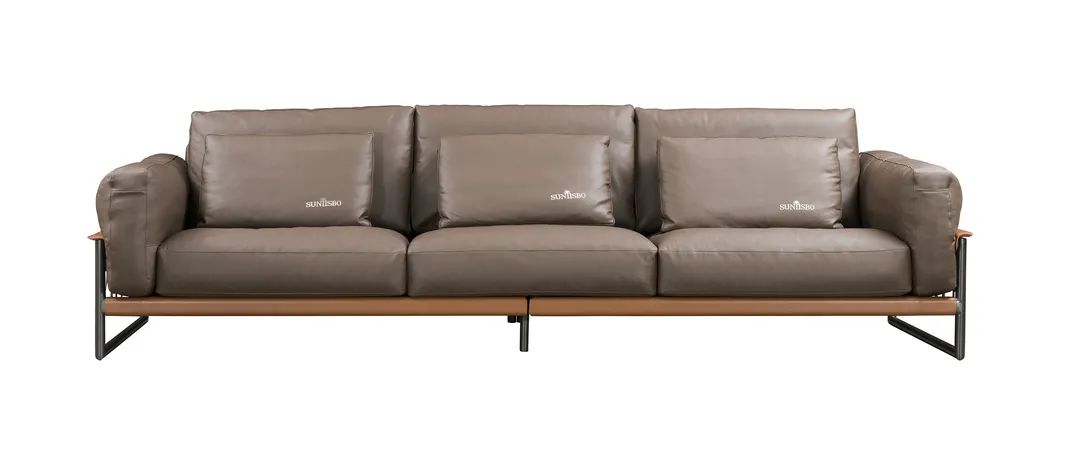 简约的造型搭配流畅的金属线条镶嵌,不仅避免了沙发的沉闷,也为客厅增添了些许灵动。整体设计简约而不简单,经典耐看,搭配同款茶几,与茶几的金属拉扣相呼应,轻松营造出客厅的高级感。