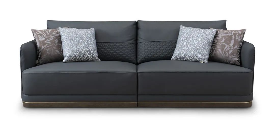 简约的造型搭配流畅的金属线条镶嵌,不仅避免了沙发的沉闷,也为客厅增添了些许灵动。整体设计简约而不简单,经典耐看,搭配同款茶几,与茶几的金属拉扣相呼应,轻松营造出客厅的高级感。